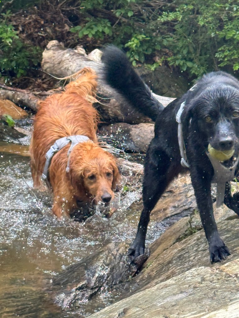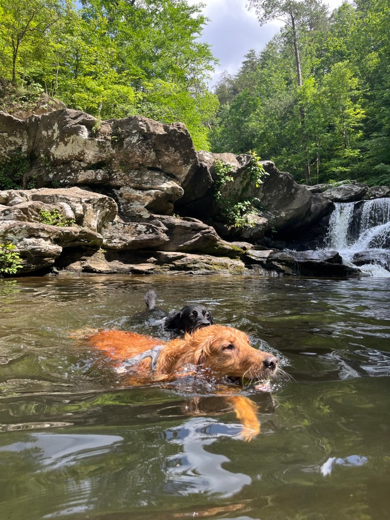 Funny the name of the waterfall/swimming hole is devil’s den when my “angels” loved it so much! E.J. and Bear are the best swimming and hiking buddies. Although Bear can’t beat E.J. In a swim race, she still tries and has a great time with it! If you plan on having a golden retriever, definitely plan on them loving getting in the water! This was a great spot for dogs 10/10.
