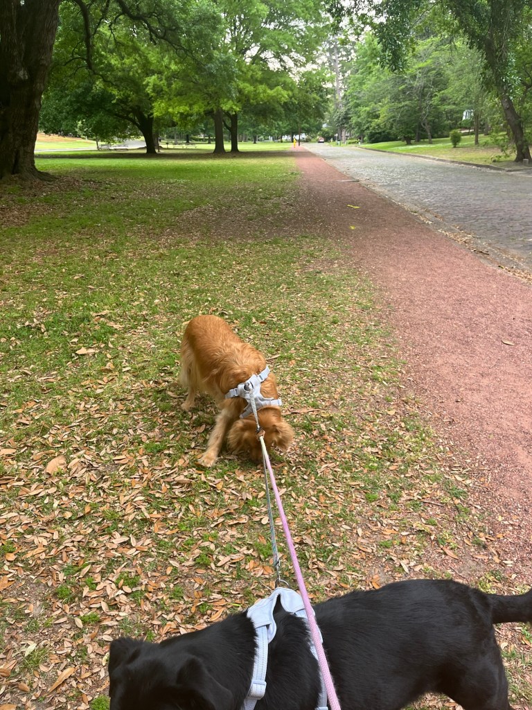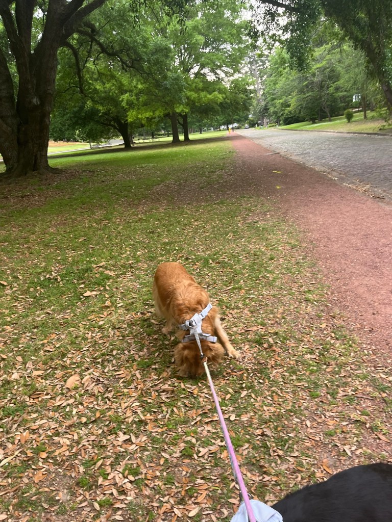 E.J.’s favorite test to administer is the sniff test! Suspicious smell? SNIFF! Another dog peed? SNIFF! Leftover squirrel aroma? SNIFF! And boy if you attempt to pull her away from the sniff? Absolutely not happening! Goldens have an incredible sense of smell.